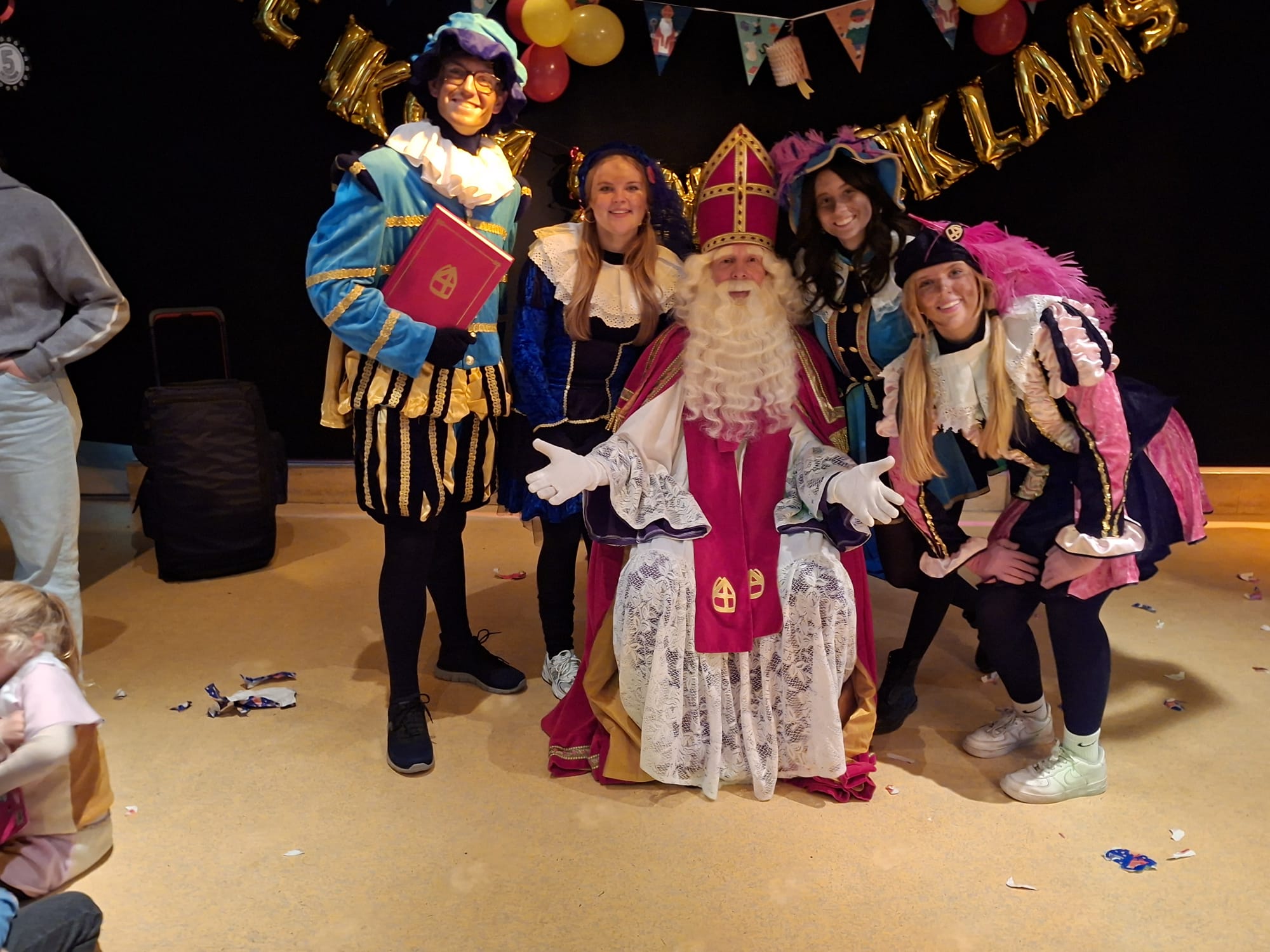 Rest ons als Feestcommissie na het opruimen van de papiersnippers nog iedereen te bedanken; de hulpouders, coaches en natuurlijk Sint en Piet voor hun komst,